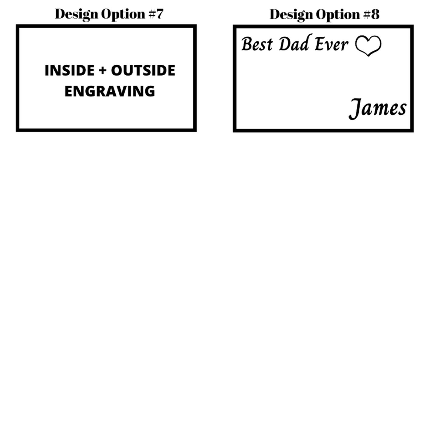 Please include the design option and details for the engraving in the notes box or send us a message after you order with those details. If a design option is not noted we will use the design that you chose or contact you for clarification if the details you provided are not clear or are not formatted for that particular design. Make sure to scroll through all photos so you don't miss the design and color options.